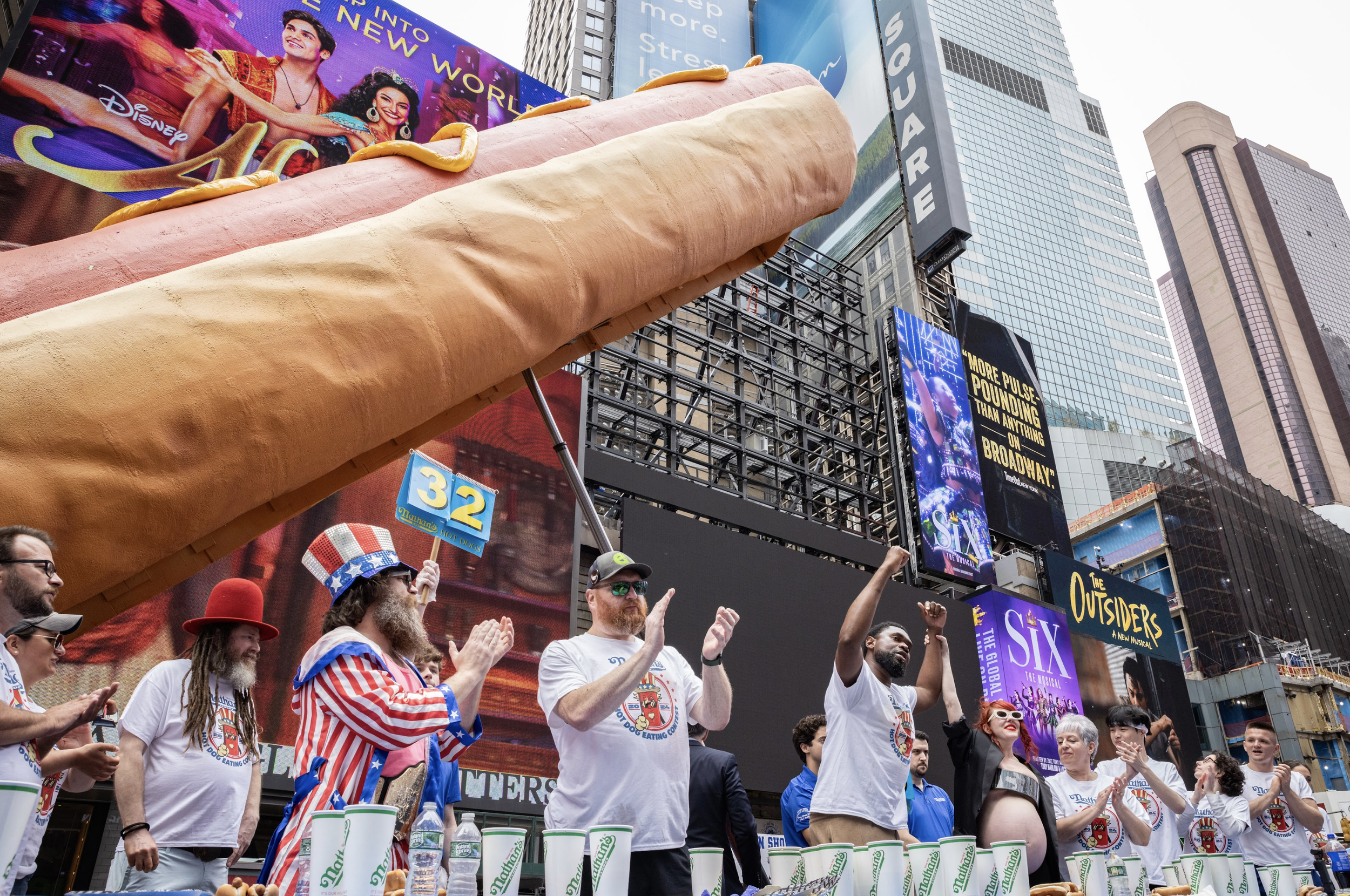 The competitors gorged themselves on hot dogs, in a display of unmatched American pride as the hot dog ascended, only to mysteriously disperse after the victor was crowned. It was a heroic day.